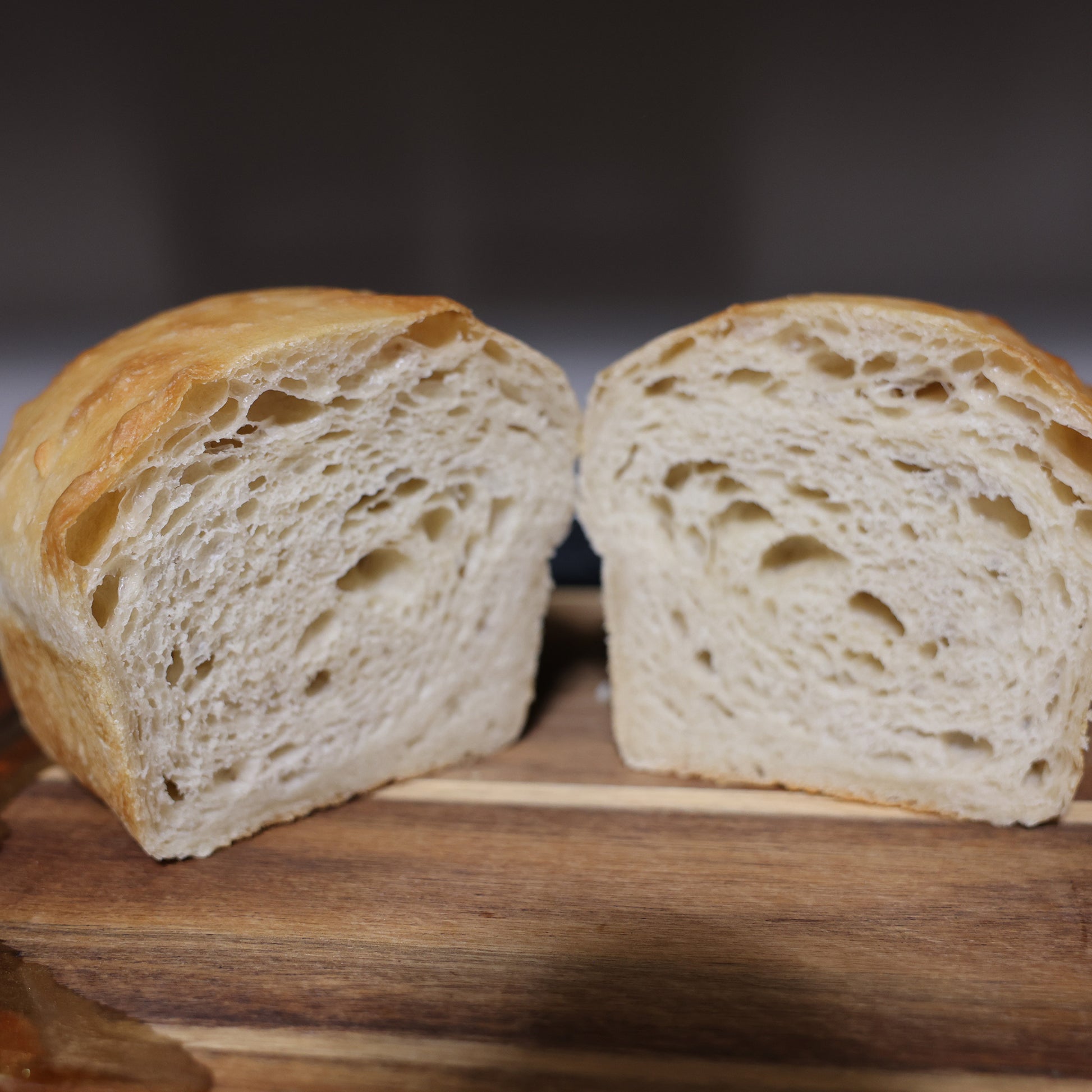 A softer sourdough loaf with a fine, even crumb. Ideal for sandwiches, grilled cheese, or morning toast. Balanced in tanginess with a light, buttery finish.